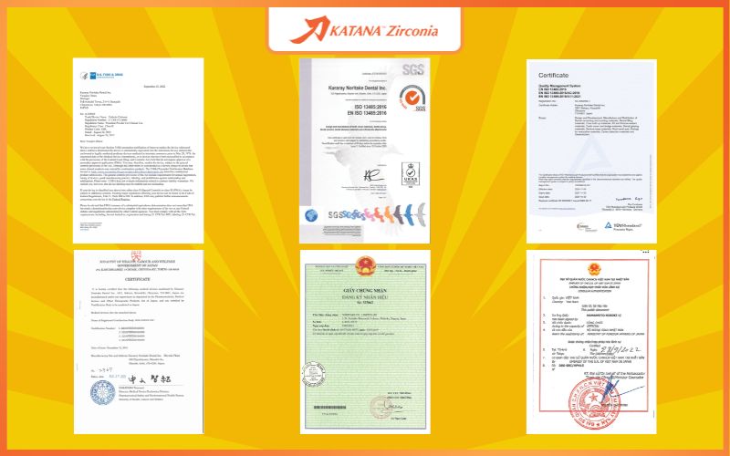 Sản phẩm chính hãng từ Kuraray Noritake, đầy đủ giấy tờ, chứng nhận trong nước và Quốc tế, đảm bảo độ ổn định và an toàn sinh học. Các chứng nhận tiêu biểu bao gồm FDA Hoa Kỳ, ISO 13485, tiêu chuẩn thiết bị y tế Châu Âu (EN ISO), chứng nhận chất lượng từ Bộ Y tế - Lao động - Phúc lợi Nhật Bản.