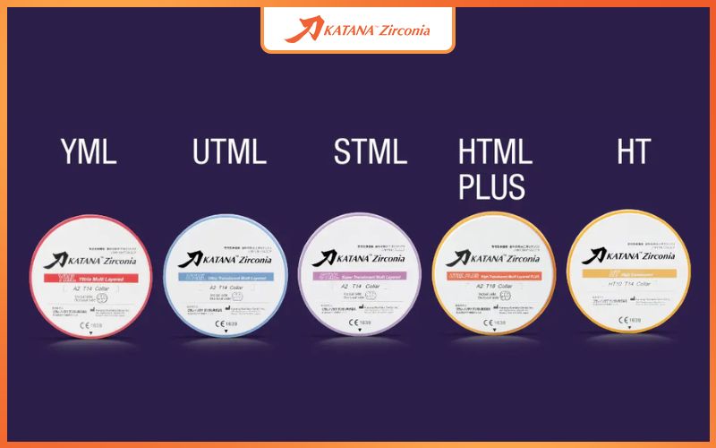 Hiện nay, Katana Zirconia được chia thành 5 dòng chính, mỗi loại được thiết kế cho chỉ định lâm sàng khác nhau.